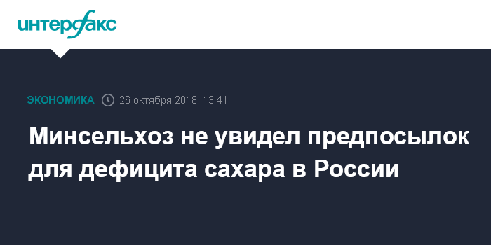 Москва. 26 октября. INTERFAX.RU - Минсельхоз не видит предпосылок для появления дефицита сахара на рынке РФ и считает, что при существующих ценах производители могут стабильно работать и наращивать экспортный потенциал.
