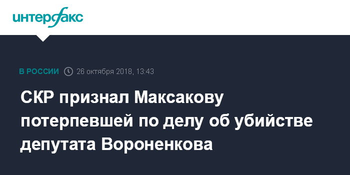 Москва. 26 октября. INTERFAX.RU - Следственный комитет РФ спустя полтора года признал вдову экс-депутата Госдумы от партии КПРФ Дениса Вороненкова Марию Максакову потерпевшей стороной по делу о его убийстве в Киеве, сообщил в пятницу "Интерфаксу" осведомленный источник.