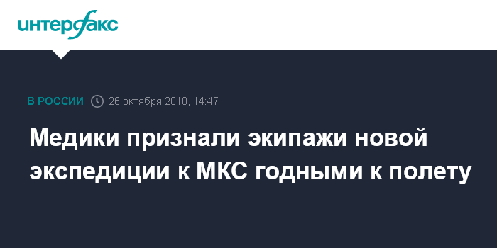 11 октября при запуске с космодрома Байконур к МКС пилотируемого корабля "Союз МС-10" с космонавтом Алексеем Овчининым и астронавтом Ником Хейгом произошла нештатная ситуация, экипажу пришлось совершить аварийную посадку в Казахстане. Авария произошла спустя две минуты после старта. Спускаемый аппарат корабля "Союз" приземлился вблизи города Жезказган в Казахстане.