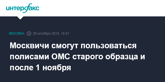 Москвичи смогут пользоваться полисами ОМС старого образца и после 1 ноября