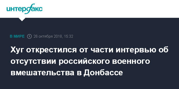 Хуг открестился от части интервью об отсутствии российского военного вмешательства в Донбассе
