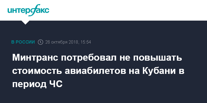 Минтранс потребовал не повышать стоимость авиабилетов на Кубани в период ЧС