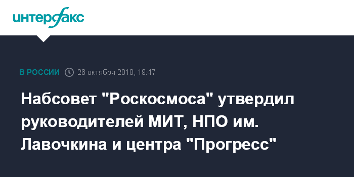 Набсовет "Роскосмоса" утвердил руководителей МИТ, НПО им. Лавочкина и центра "Прогресс"