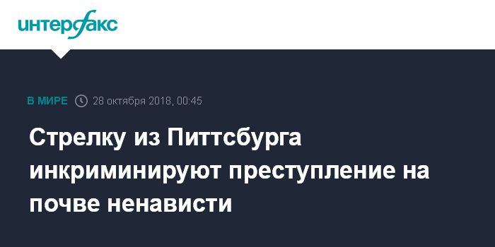 Стрелку из Питтсбурга инкриминируют преступление на почве ненависти