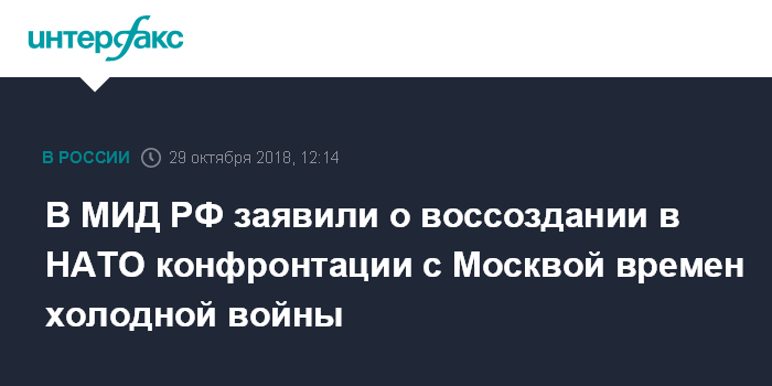 Москва. 29 октября. INTERFAX.RU - НАТО идет в сторону воссоздания системы конфронтации, существовавшей в годы холодной войны, заявил в понедельник замглавы МИД РФ Александр Грушко.