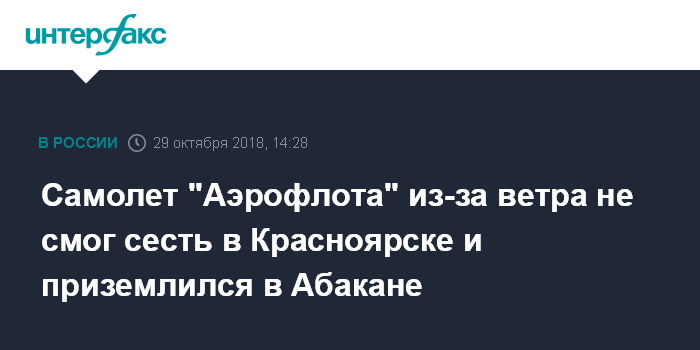 Самолет "Аэрофлота" из-за ветра не смог сесть в Красноярске и приземлился в Абакане