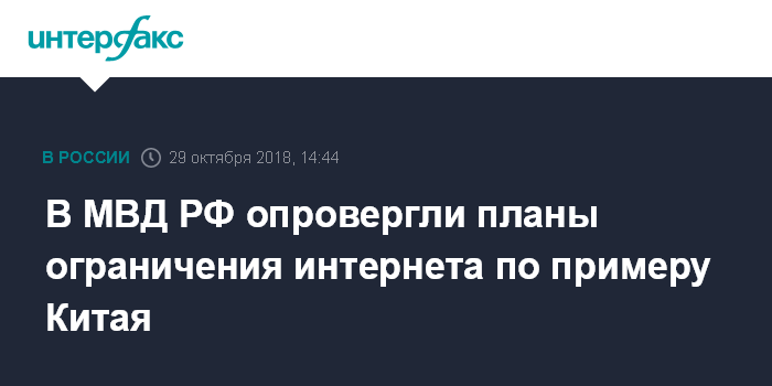 В МВД РФ опровергли планы ограничения интернета по примеру Китая
