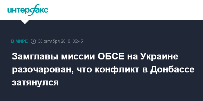Замглавы миссии ОБСЕ на Украине разочарован, что конфликт в Донбассе затянулся
