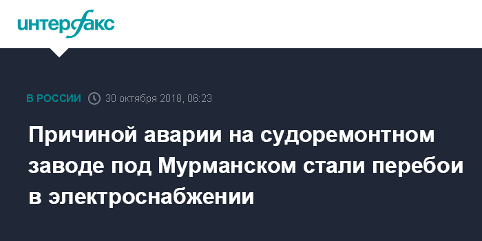 Причиной аварии на судоремонтном заводе под Мурманском стали перебои в электроснабжении