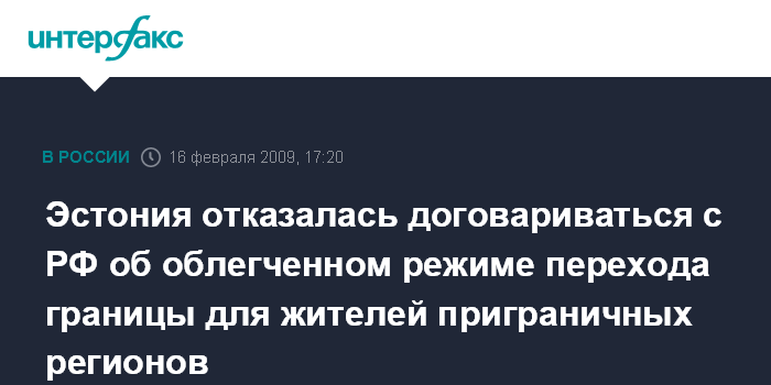 Таллин. 16 февраля. INTERFAX.RU - Премьер-министр Эстонии Андрус Ансип заявил, что эстонская сторона отказывается от переговоров с Россией о введении облегченного режима пересечения границы жителями приграничных регионов.