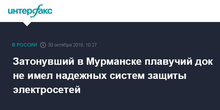 Москва. 30 октября. INTERFAX.RU - Затонувший плавучий док мурманского судоремонтного завода № 82, в котором находился авианосец Северного флота "Адмирал Кузнецов", не имел достаточных систем защиты электросетей от перепадов напряжения.