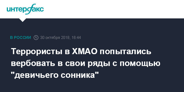 Террористы в ХМАО попытались вербовать в свои ряды с помощью "девичьего сонника"