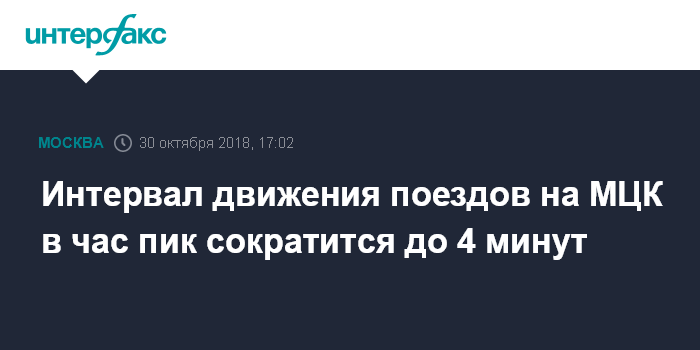 Москва. 30 октября. INTERFAX.RU - Интервал движения поездов по Московскому центральному кольцу (МЦК) в час пик с 2019 сократится до 4 минут.