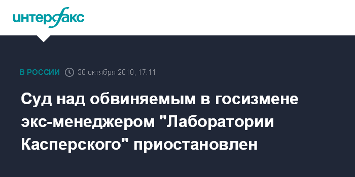 Суд над обвиняемым в госизмене экс-менеджером "Лаборатории Касперского" приостановлен