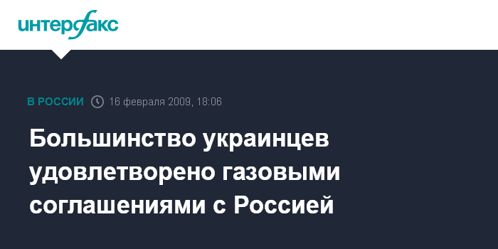 Киев. 16 февраля. INTERFAX.RU - Большинство орошенных украинцев довольно, либо считает приемлемыми условия газовых договоренностей между Киевом и Москвой.