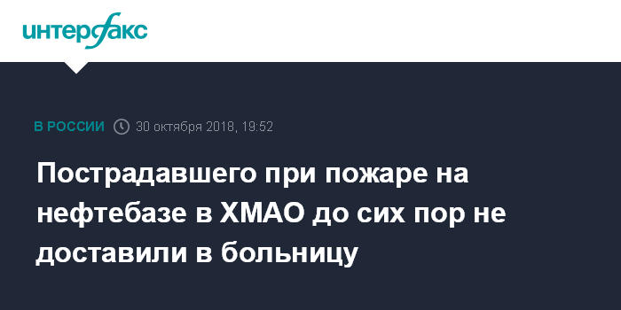 Пострадавшего при пожаре на нефтебазе в ХМАО до сих пор не доставили в больницу