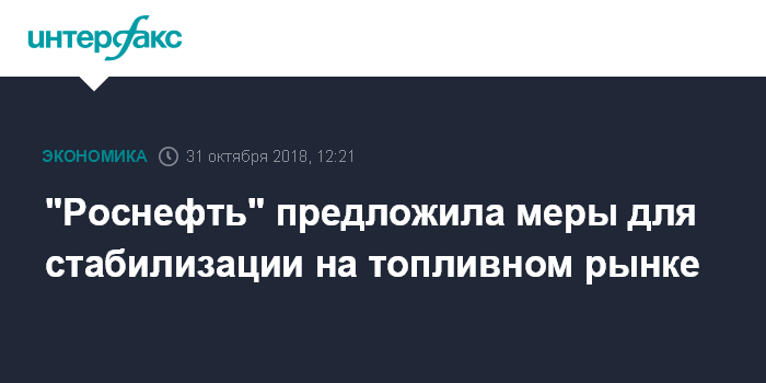 Москва. 31 октября. INTERFAX.RU - "Роснефть" поддерживает действия правительства по стабилизации ситуации на рынке и уже направила ряд предложений, в том числе, по снижению риска дефицита нефти и нефтепродуктов, говорится в заявлении компании.