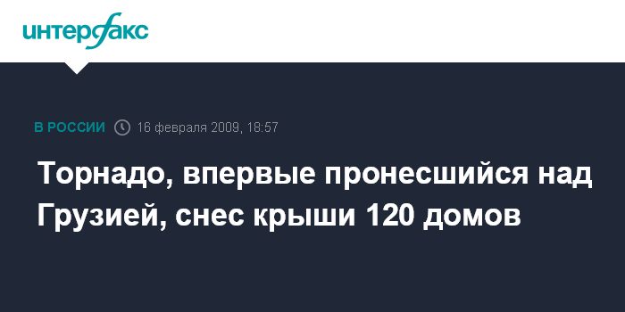 Тбилиси. 16 февраля. INTERFAX.RU - Власти западной Грузии сообщили о торнадо, который в понедельник впервые зафиксирован в этом регионе, где ранее нередко случались ураганы.