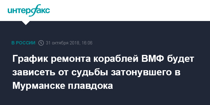 Москва. 31 октября. INTERFAX.RU - График ремонта кораблей ВМФ России будут зависеть от дальнейшей судьбы затонувшего в Мурманске плавучего дока ПД-50, сообщил глава Объединенной судостроительной корпорации Алексей Рахманов.