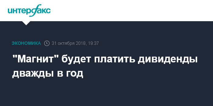 Москва. 31 октября. INTERFAX.RU - Ритейлер "Магнит" планирует платить дивиденды дважды в год.
