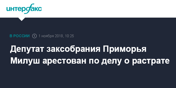 Депутат заксобрания Приморья Милуш арестован по делу о растрате