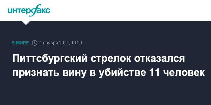 Москва. 1 ноября. INTERFAX.RU - Роберт Боуэрс, которого обвиняют в убийстве 11 человек в синагоге в Питтсбурге, в четверг заявил в суде, что не признает свою вину, сообщает агентство Associated Press.