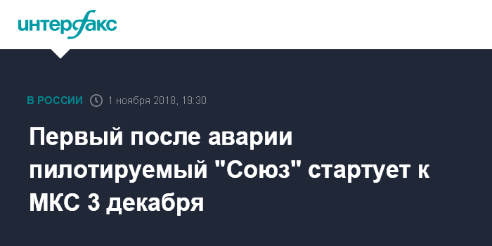 Первый после аварии пилотируемый "Союз" стартует к МКС 3 декабря