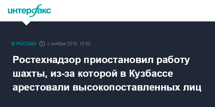 Ростехнадзор приостановил работу шахты, из-за которой в Кузбассе арестовали высокопоставленных лиц