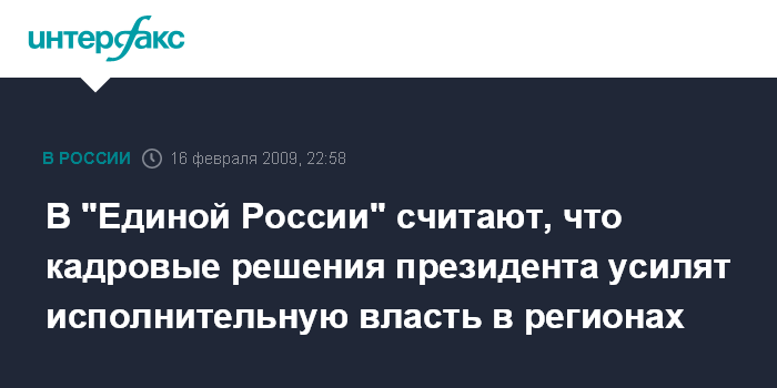 В "Единой России" считают, что кадровые решения президента усилят исполнительную власть в регионах