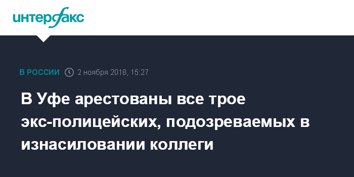 Полицейские были задержаны 31 октября по подозрению в групповом изнасиловании 23-летней девушки-дознавателя в здании отдела по вопросам миграции ОМВД России по Уфимскому району в ночь на 30 октября. Против них возбуждено уголовное дело по пункту "а" части 2 статьи 131 (изнасилование), пункту "а" части 2 статьи 132 (насильственные действия сексуального характера) УК РФ.