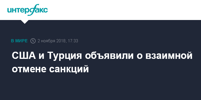 Отмечается, что эти меры последовали в ответ на решение Вашингтона отменить санкции в отношении двух турецких министров.