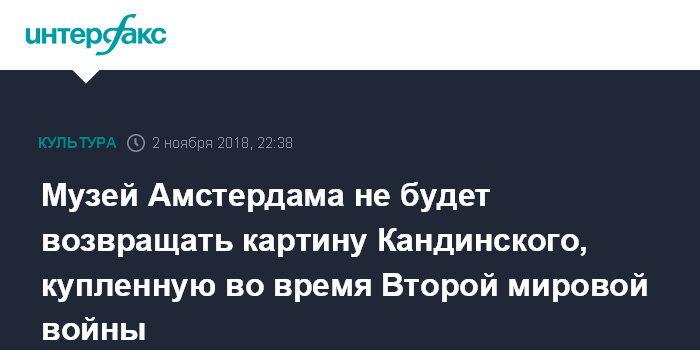 Музей Амстердама не будет возвращать картину Кандинского, купленную во время Второй мировой войны