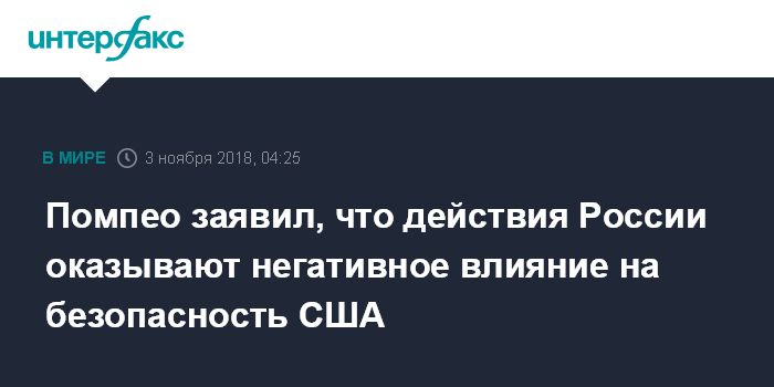 Помпео заявил, что действия России оказывают негативное влияние на безопасность США