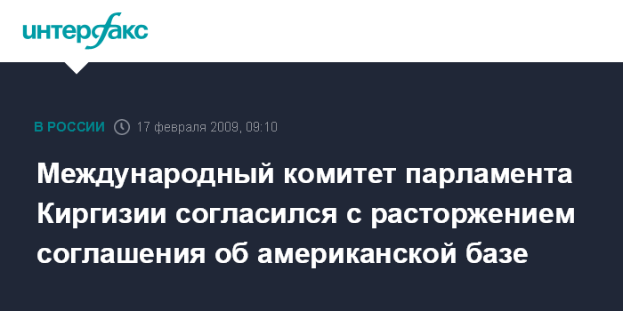 Москва. 17 февраля. INTERFAX.RU - Комитет парламента Киргизии по международным делам поддержал предложение правительства страны о выводе авиабазы "Манас".