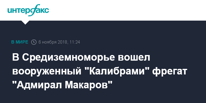 Москва. 6 ноября. INTERFAX.RU - Новейший фрегат Черноморского флота (ЧФ) "Адмирал Макаров" во вторник, пройдя Черноморские проливы, вошел в акваторию Средиземного моря, сообщили стамбульские информационные порталы, публикующие фотографии его прохождения через Босфор.