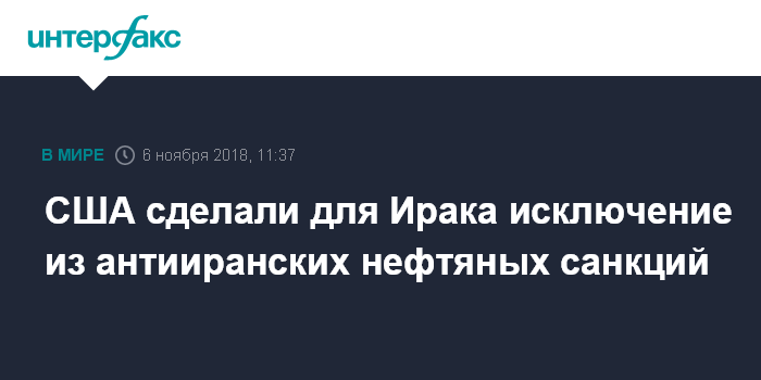 "Ираку дали исключение" из энергетических санкций США в отношении Ирана, приводит его слова агентство Bloomberg.