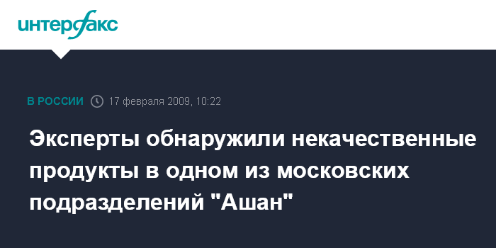 Эксперты обнаружили некачественные продукты в одном из московских подразделений "Ашан"
