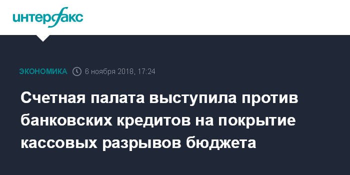 Счетная палата выступила против банковских кредитов на покрытие кассовых разрывов бюджета