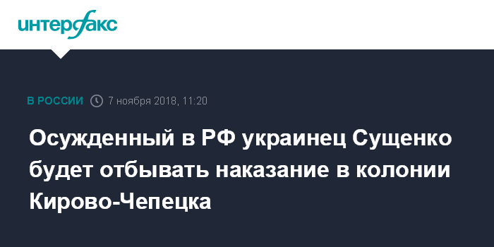 Осужденный в РФ украинец Сущенко будет отбывать наказание в колонии Кирово-Чепецка