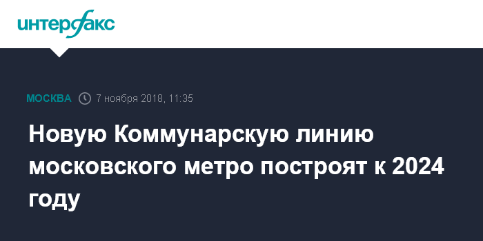 Новую Коммунарскую линию московского метро построят к 2024 году