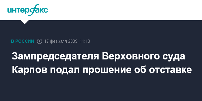 Зампредседателя Верховного суда Карпов подал прошение об отставке