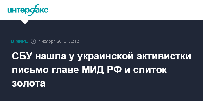 СБУ нашла у украинской активистки письмо главе МИД РФ и слиток золота
