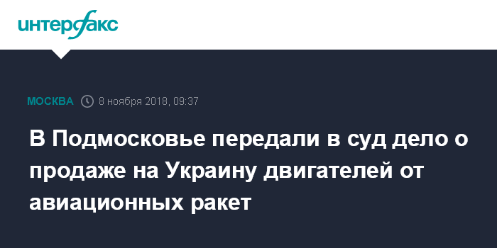 В Подмосковье передали в суд дело о продаже на Украину двигателей от авиационных ракет