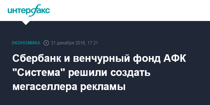 Сбербанк и венчурный фонд АФК "Система" решили создать мегаселлера рекламы