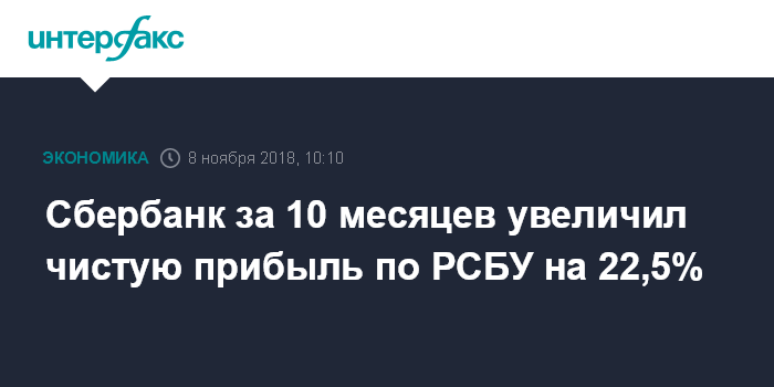 Сбербанк за 10 месяцев увеличил чистую прибыль по РСБУ на 22,5%