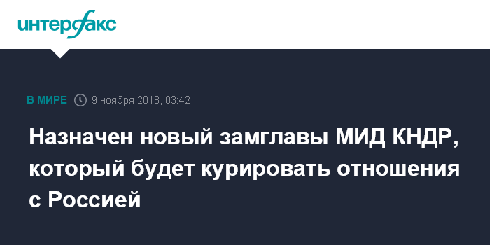 Назначен новый замглавы МИД КНДР, который будет курировать отношения с Россией