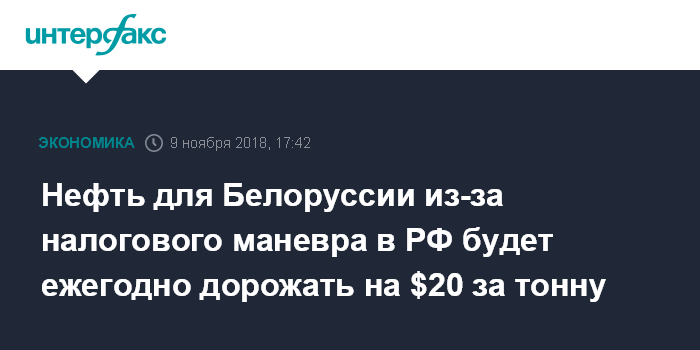 "При цене нефти $70 за баррель введение параметров налогового маневра приведет к ежегодному удорожанию для нас нефти, по предварительным расчетам, более чем на $20 за тонну", - сказал Сизов в интервью госагентству БелТА.