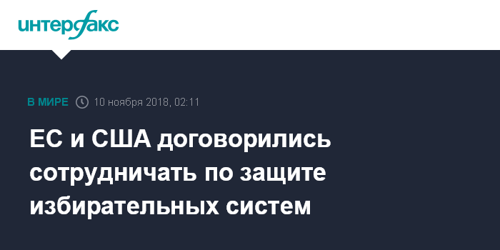 "В целях содействия обмену мнениями между соответствующими экспертами обеих сторон о текущих проблемах, связанных с выборами, включая такие проблемы, как кампании дезинформации и другие формы вмешательства, как онлайн, так и оффлайн, Соединенные Штаты и Европейский союз договорились наладить регулярный диалог по этим вопросам, детали которого должны быть разработаны на следующем совещании старших должностных лиц в 2019 году", - говорится в документе.