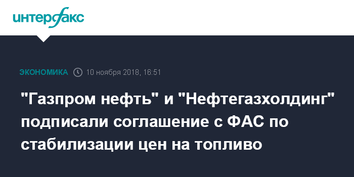 "Газпром нефть" и "Нефтегазхолдинг" подписали соглашение с ФАС по стабилизации цен на топливо