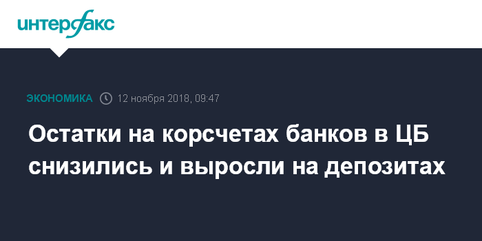 Остатки на корсчетах банков в ЦБ снизились и выросли на депозитах
